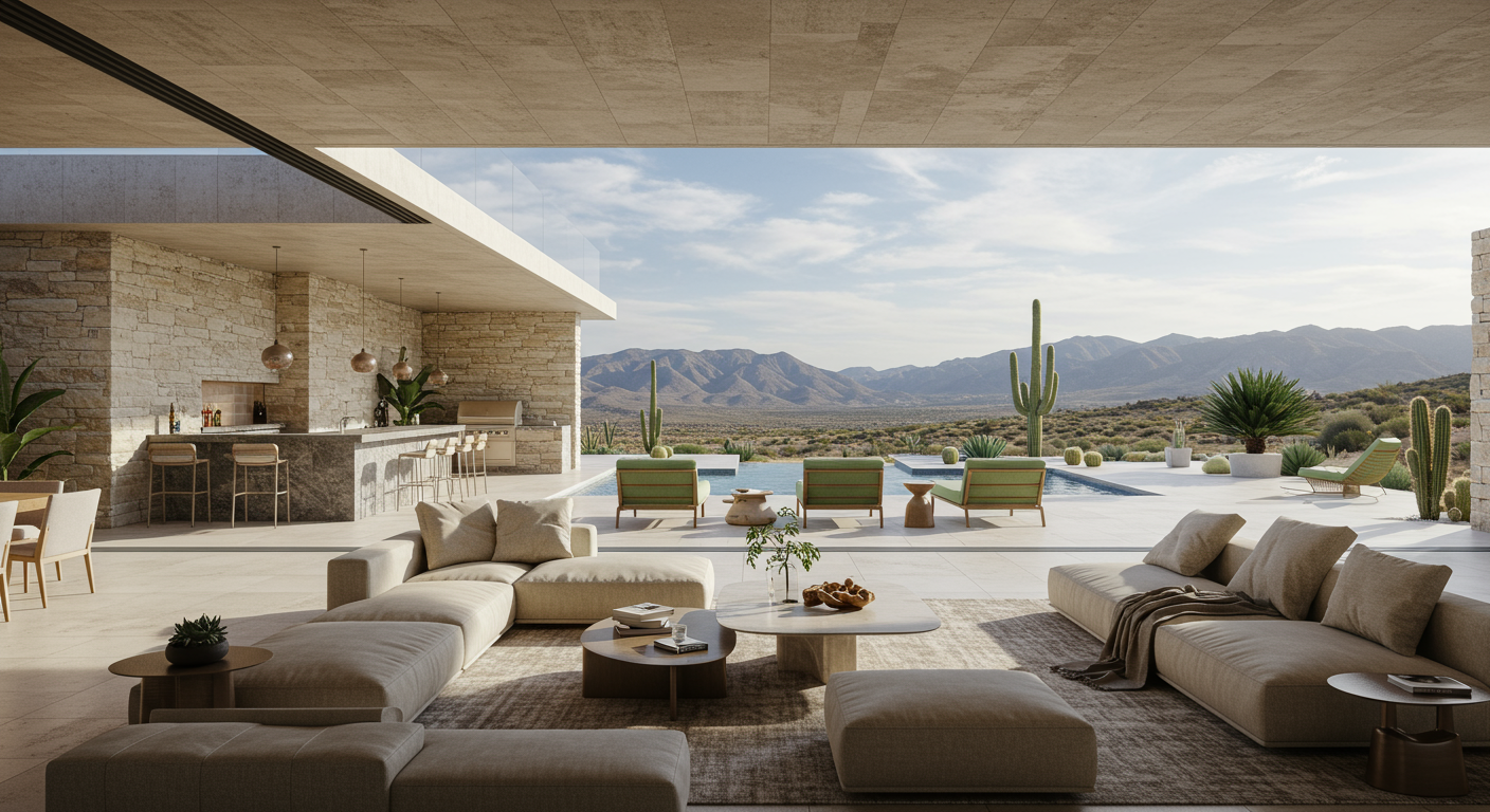 SAOTA has an established presence in the luxury home market in the US and was recognized by the homeowner for some of their remarkable hillside designs in Los Angeles where the family’s second home is located. “What immediately drew us to SAOTA was their floating hillside designs which felt like an extension of the natural landscape. Every angle of the open-air design presented a different artistic expression of architectural elements and surrounding scenery,” says the husband. Nearly one year into the process, Principal Architect of SAOTA Mark Bullivant traveled to Arizona to present the conceptual visualizations at BedBrock’s office in Paradise Valley. The couple, together with the BedBrock team, were stunned by the grandeur of the architecture and how well it integrated into the desert hillside landscape. “We have found their design approach and methodology to be truly in line with our lifestyle and are blown away by what we have seen so far” the wife adds.
