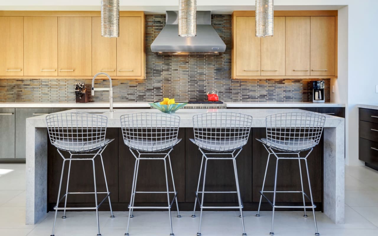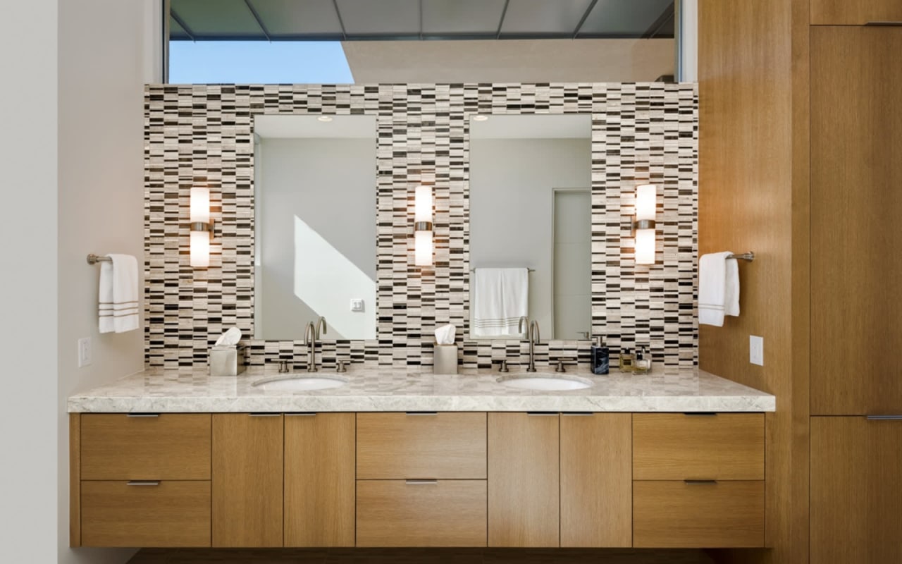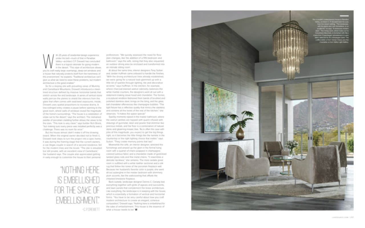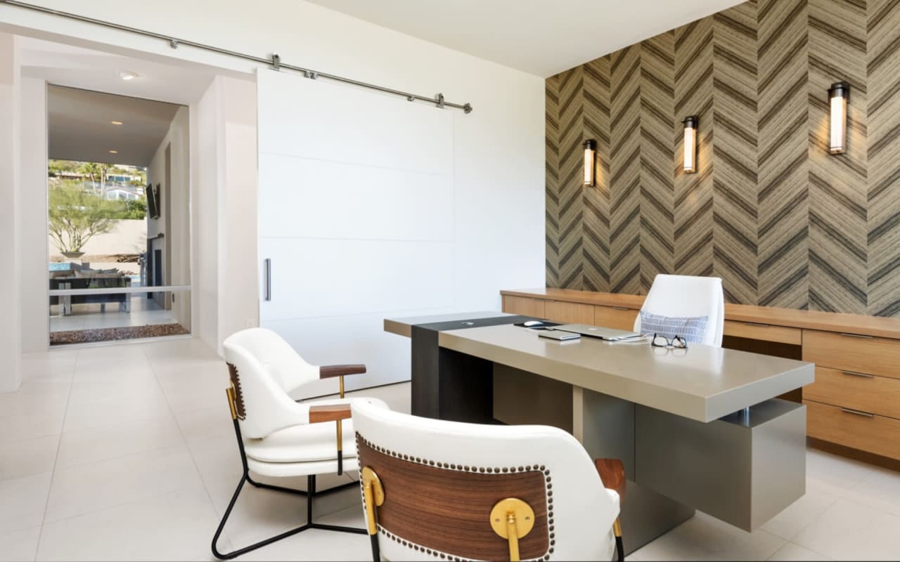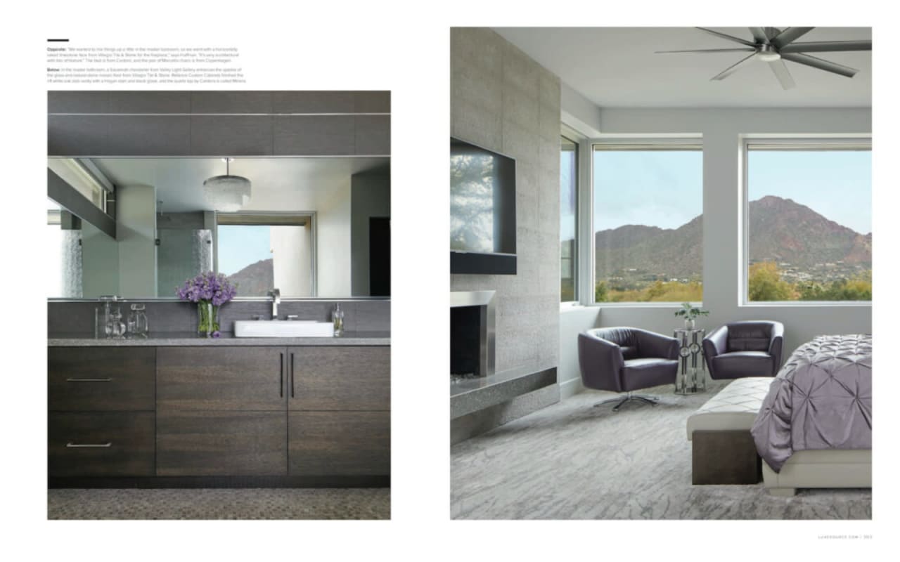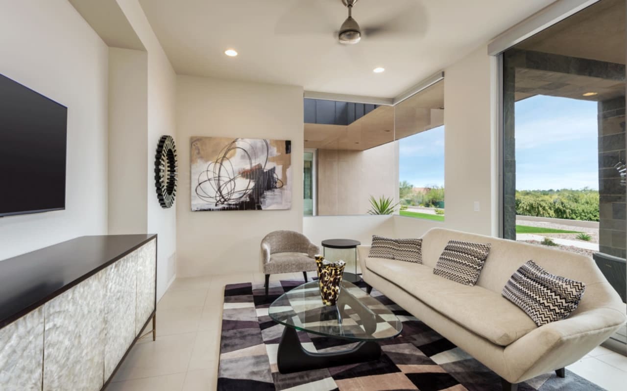 ​​​​​​​The iconic private bridge leading towards the master suite creates an architectural image in itself with the majestic Camelback Mountain backdrop. A re-imagined mid-century modern interior by Est Est gives the home a unique personality. Pops of color and defined lighting throughout enhances the state-of-the-art architecture.